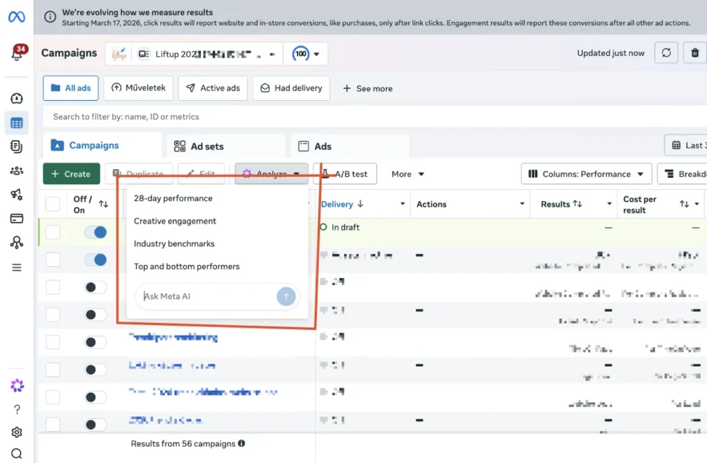 Kiválaszthatunk például egy kampányt, amelyikről konkrétan beszélgethetünk a Meta AI asszisztenssel.